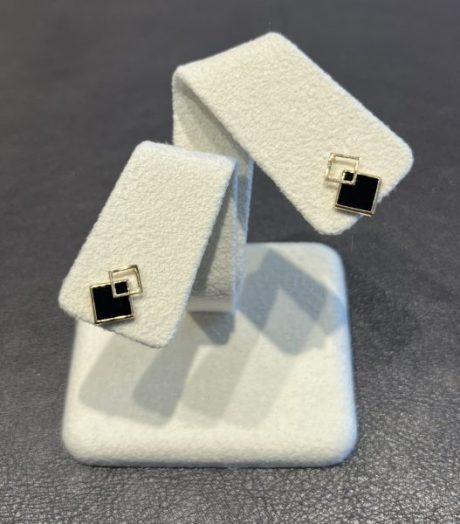 オニキスとk18イエローゴールドのオシャレなピアス。